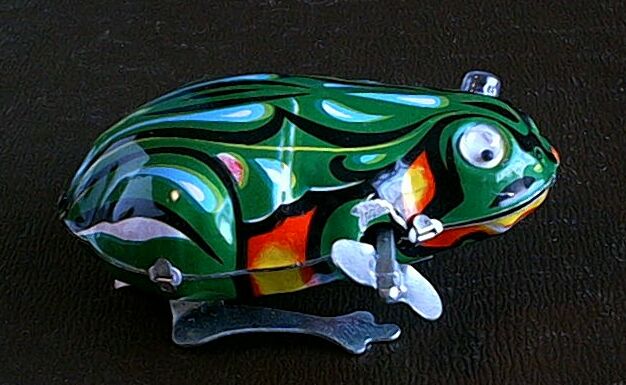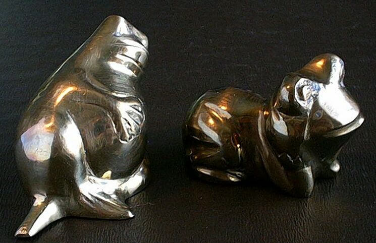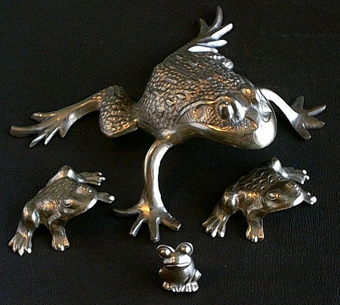 Here are my metal frogs. I have quite a few brass ones, including 3 frogs keeping cool under parasols and a Mother with her two froglets.