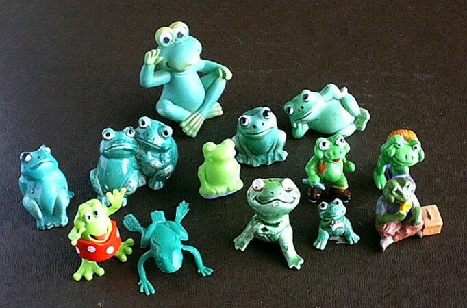 You may think that the plastic frogs are tacky and not worth collecting, but in fact, they are the hardest to find. People don't sell frogs from crackers or out of kids kinder eggs, they just throw them in the bin. Some of these frogs are larger, but tend to be in poorer condition as they are usually played with by children.